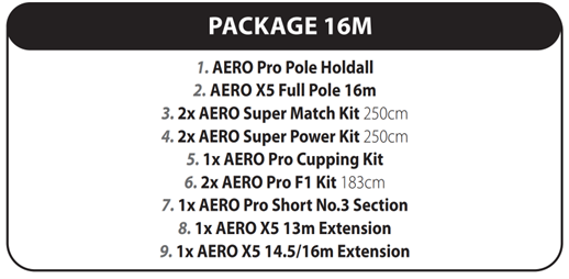 Vous déposez derrière vous les 13m et le Graal, et à un prix défiant toute concurrence vous obtenez la canne SHIMANO AERO X5 et son pack... en version 16m TRES COMPLET ! En loisir, tout est permis (en concours OPEN aussi) : la berge d'en face n'a qu'à bien se tenir !